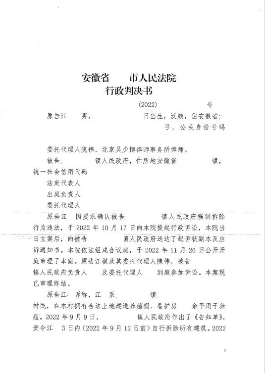 本案代理律師 北京吳少博律師事務(wù)所郭昌通 案情摘要: 無證房居住多年未辦證 被確認(rèn)為違建
